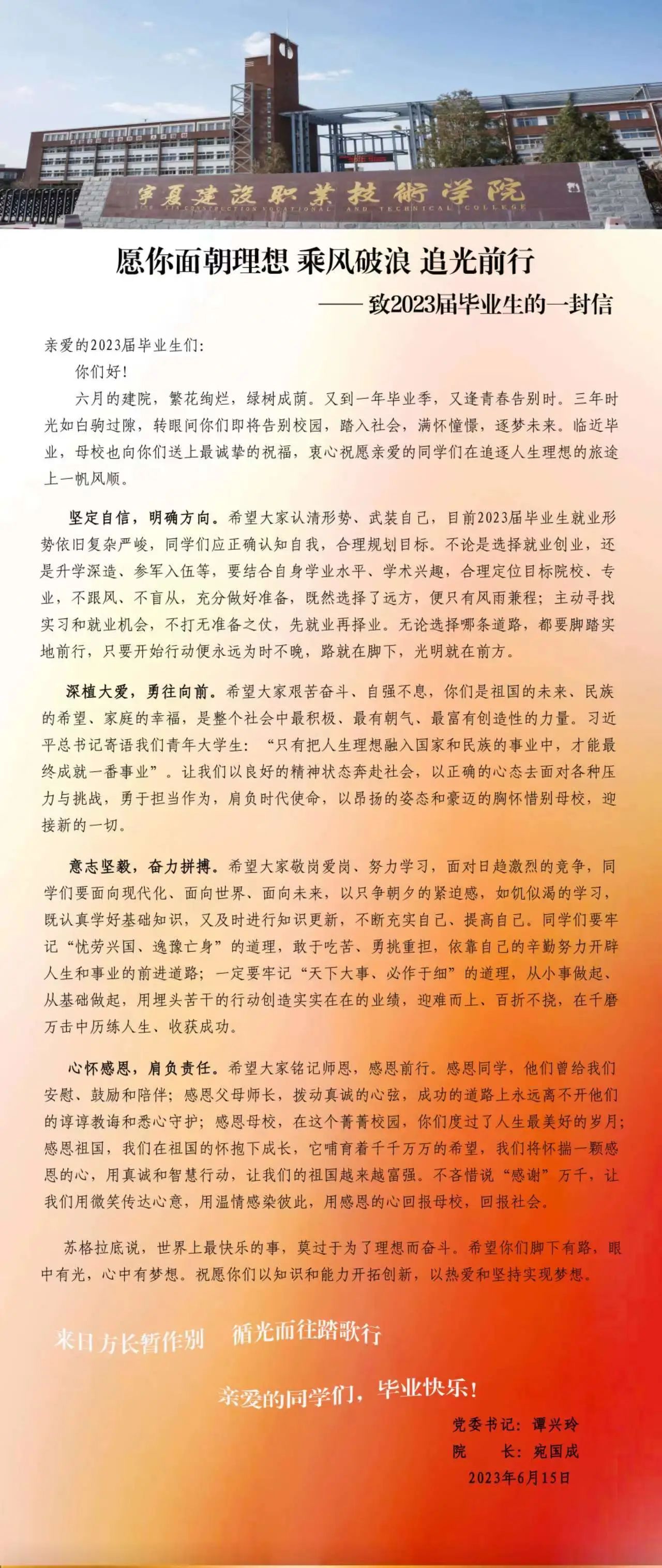 愿你面朝理想 乘风破浪 追光前行——致2023届毕业生的一封信