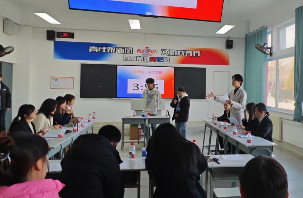 12月4日,由中共银川市西夏区委宣传部组织开展的“西夏新风杯”高校辩论赛初赛在我校圆满落幕。宁夏大学、银川科技学院、宁夏建设职业技术学院三支代表队围绕“传统彩礼是婚姻的试金石还是绊脚石”这一社会热点议题展开激烈辩论,以思辨之火点燃文明新风,展现新时代青年对传统习俗与现代价值观的深度思考。