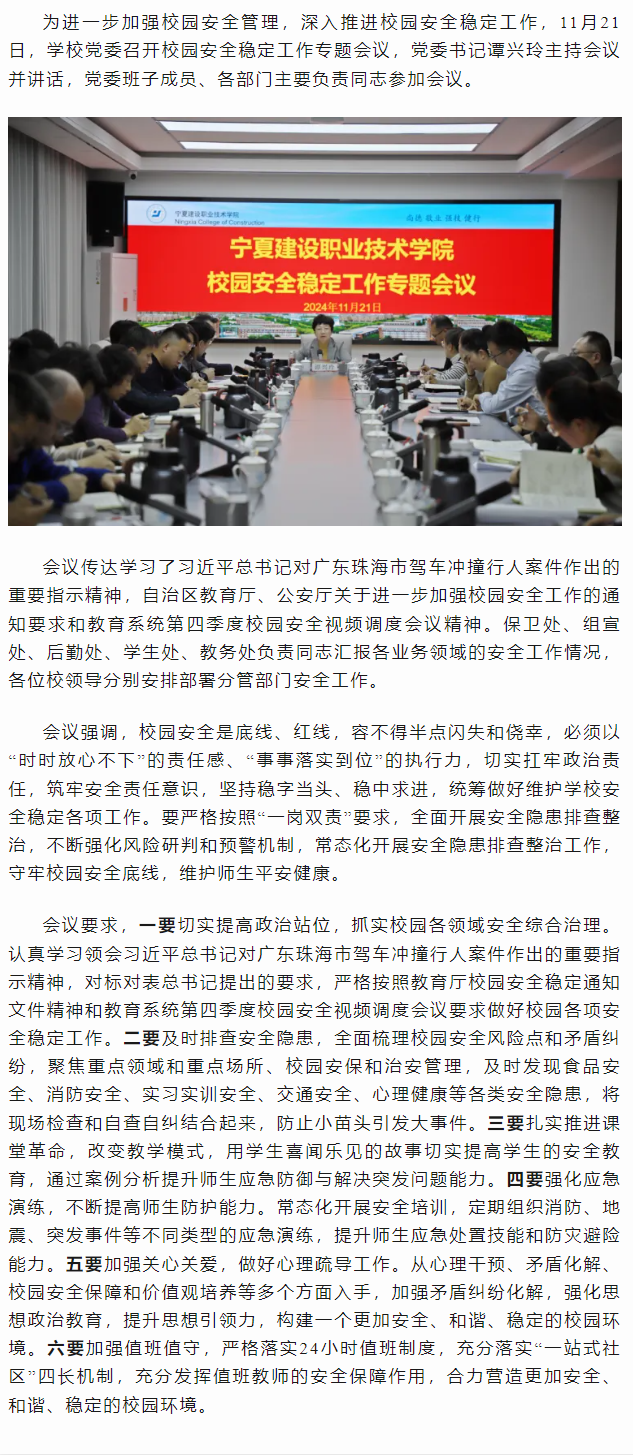 学校召开校园安全工作专题会议